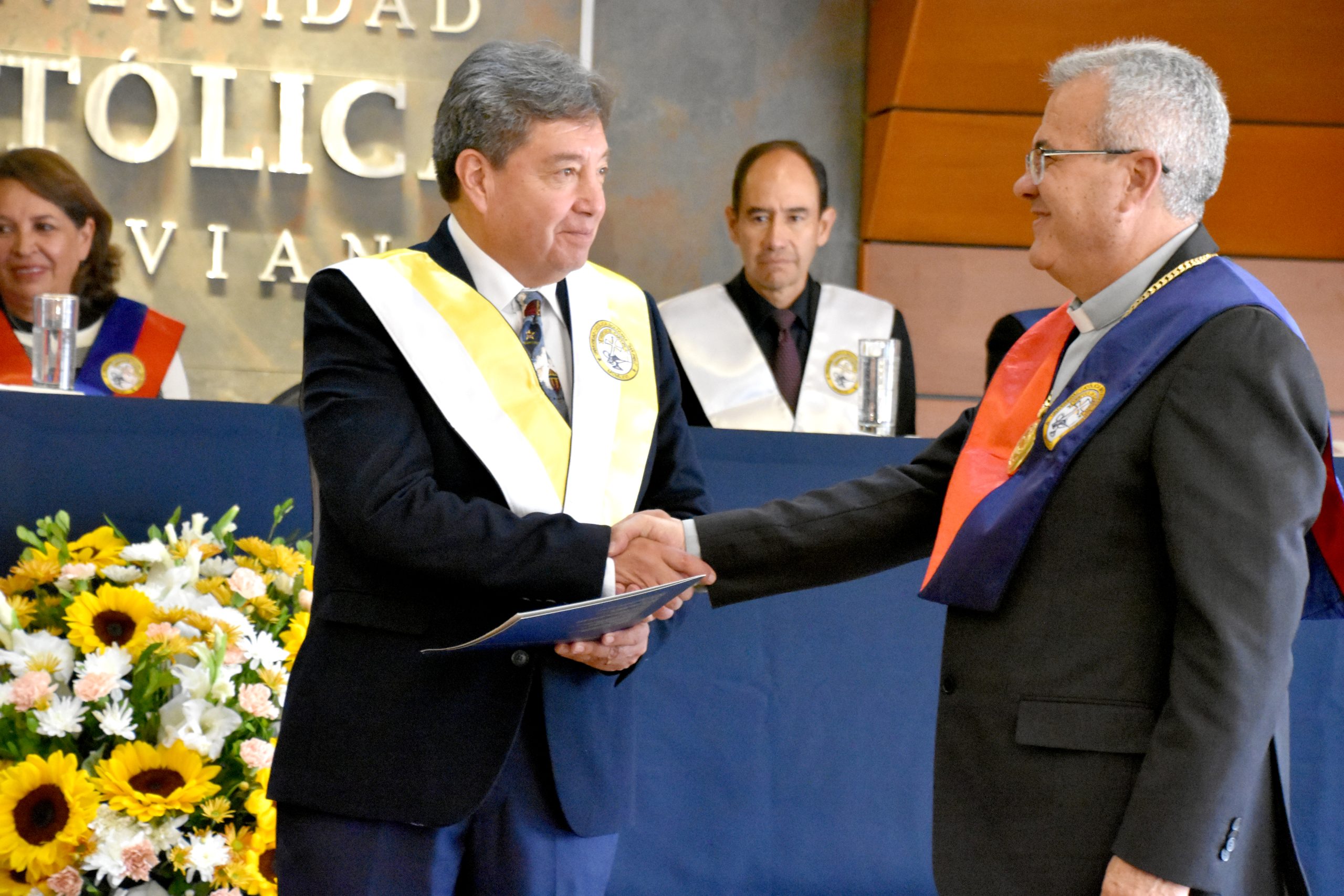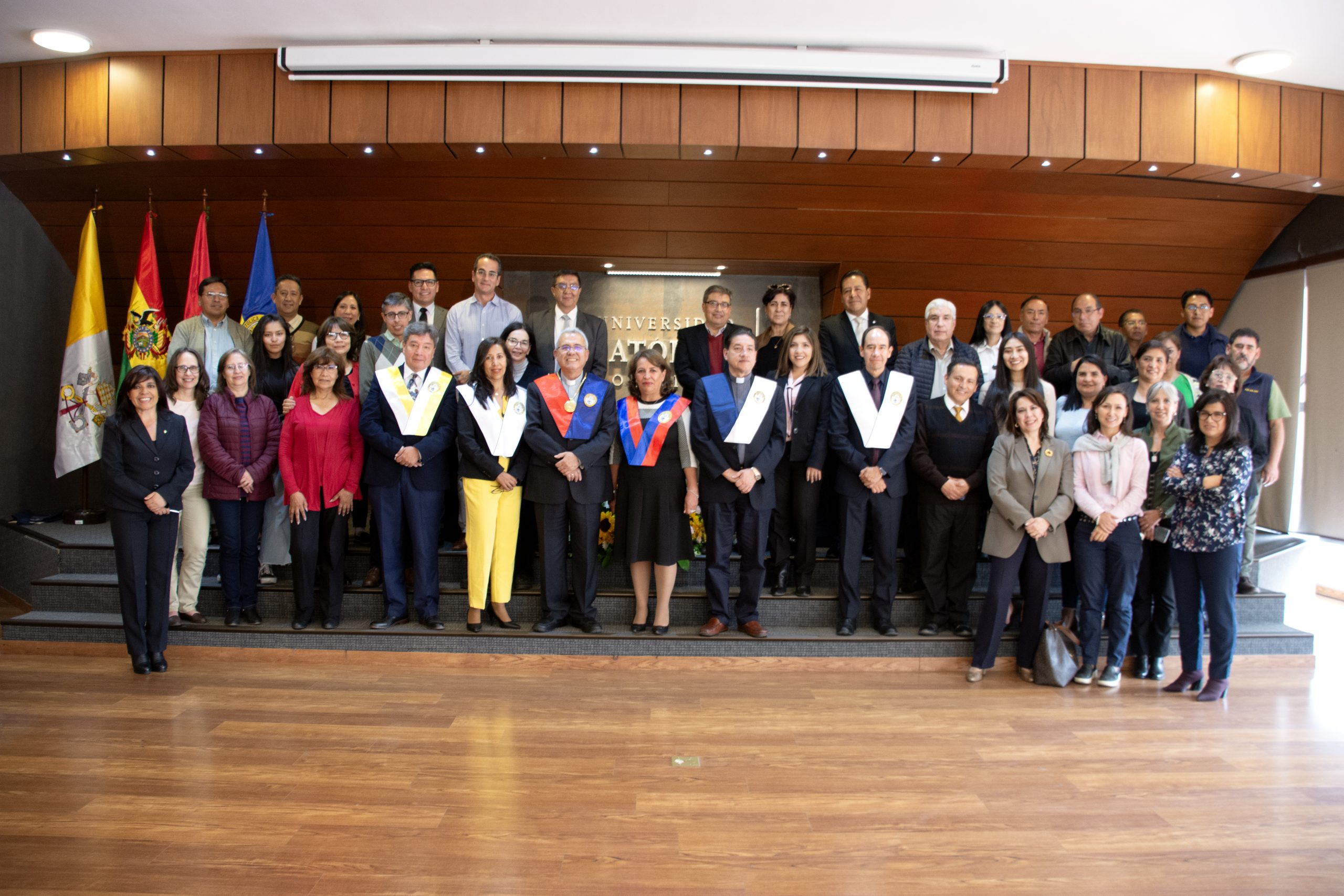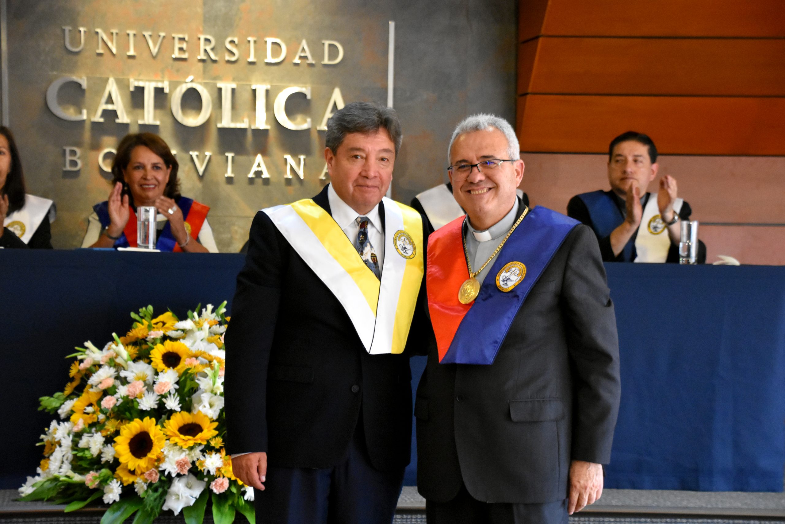 07.01.2024. Con la presencia del Rector Nacional, P. José fuentes Cano, la Rectora de Sede La Paz Ximena Peres, autoridades académicas y administrativas, decanos, directores de carreras, docentes y estudiantes, se llevó a cabo, el pasado martes 6 de enero de 2024, el acto de posesión de nuevo Director, Dr. Carlos Herminio Ibáñez Guzmán, de la Carrera de Medicina de la Universidad Católica Boliviana «San Pablo” (U.C.B.), Sede La Paz.