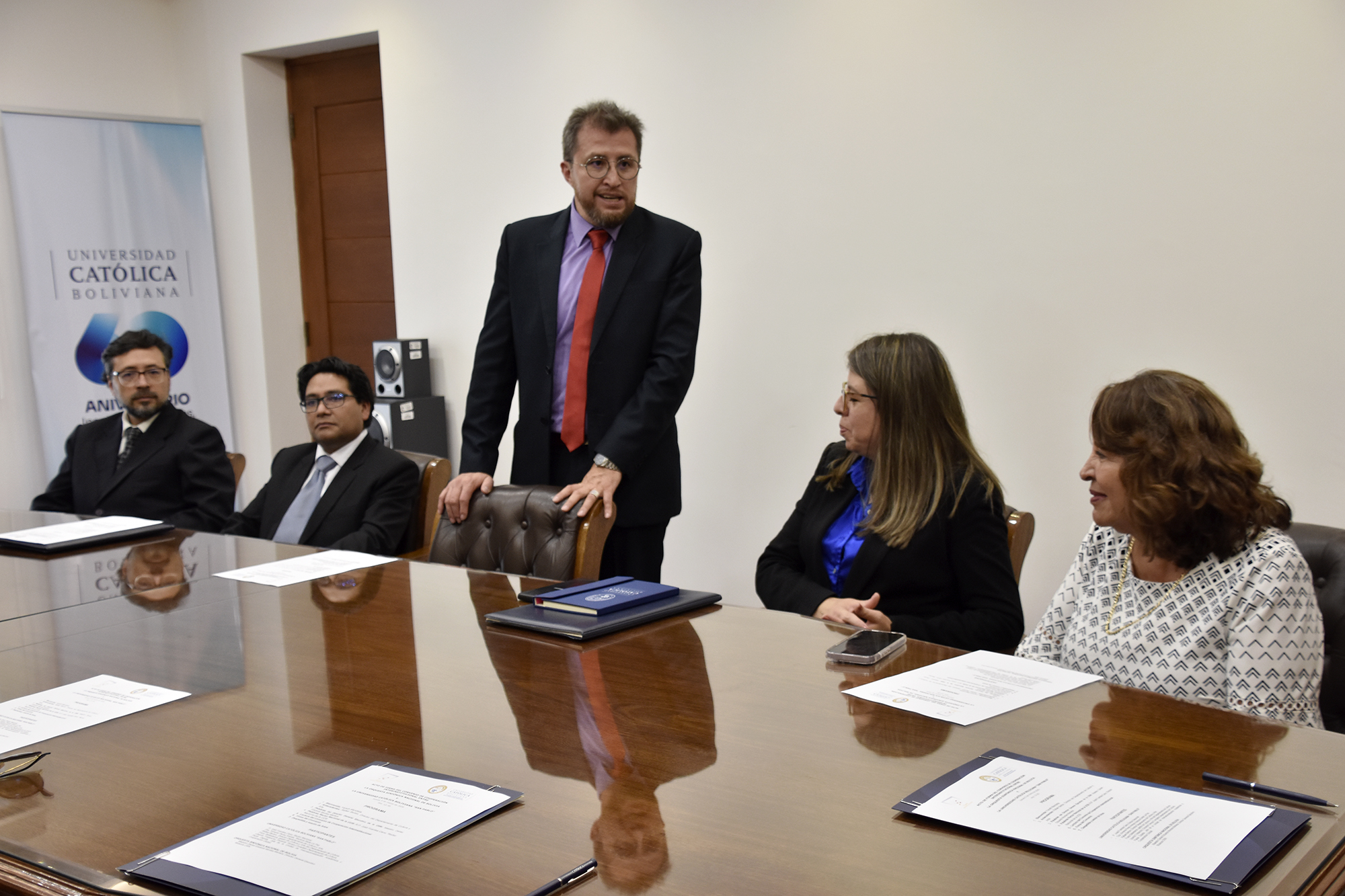 La alianza también contempla el impulso a la producción de contenidos audiovisuales y editoriales relacionados con la historia y el impacto cultural de la Orquesta Sinfónica Nacional, así como el desarrollo de actividades artísticas conjuntas, especialmente en el marco de las celebraciones por los 60 años de la Universidad Católica Boliviana “San Pablo”. De esta manera, ambas instituciones buscan consolidar un espacio de colaboración que fortalezca el diálogo entre la academia, la cultura y el patrimonio musical del país.